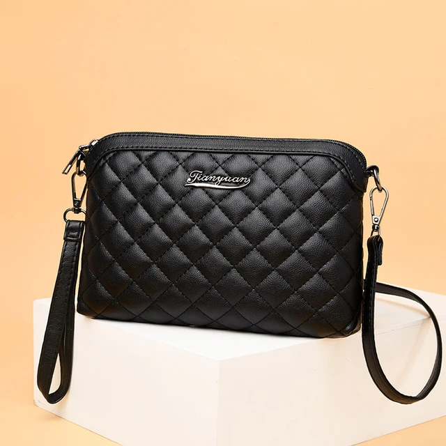2021 New Fashion Women Plaid Shoulder Bag Soft PU Leather Ladies Handbags Joker Leisure Female Crossbody Bags Women Black Bags