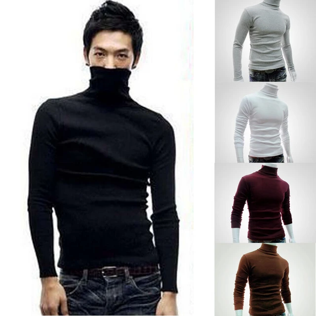 Winter Men Slim Warm Cotton Turnleneck Pullover Solid Color Jumper Sweater Male Top Black Gray White Wine Red Coffee